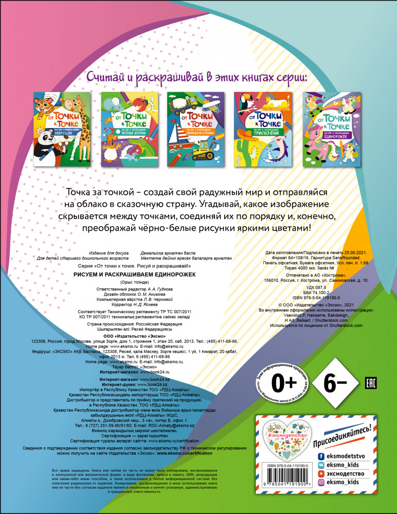 От точки к точке. Рисуем и раскрашиваем единорожекВ данный момент этот товар отсутствует в продаже. Возможно, у нас найдется аналогичный или похожий товар здесь. Серия: От точки к точке. Рисуй и раскрашивай! Хотите увидеть, как единорожка машет вам копытцем? А может, хотите узнать, как выглядит самый застенчивый в мире единорог? Тогда скорее соединяйте все точки! Вам откроются замечательные изображения очаровательных обладателей радужного рога и волшебной гривы. Раскрасьте картинки самыми сочными цветами, ведь там, за радугой, мир, полный самых ярких красок жизни и веселья! |