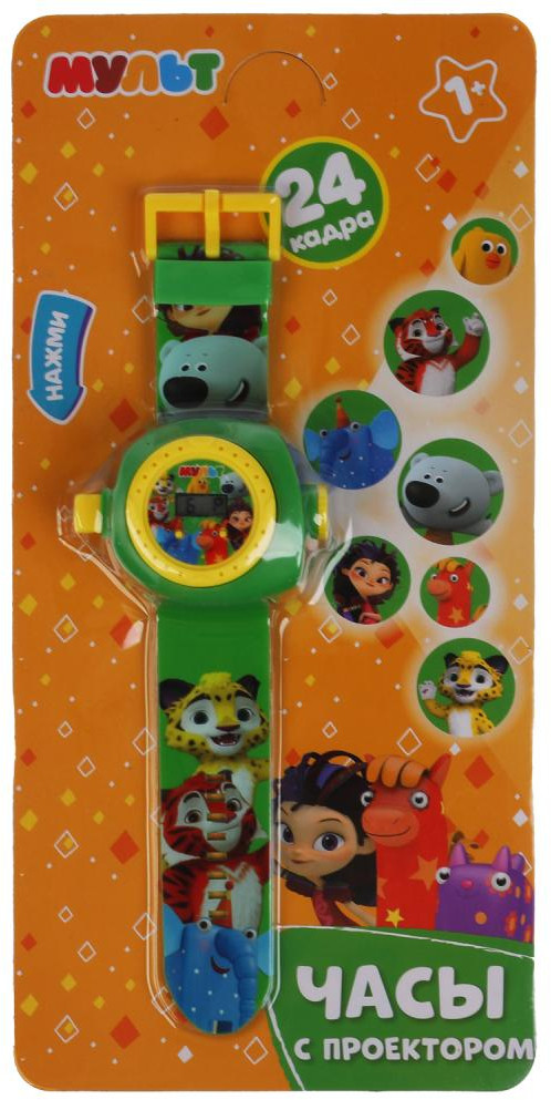 Развивающие часы с проектором «Мульт» ТМ «УМка» станут прекрасным подарком для ребёнка. Детские наручные часы сделаны по мотивам известных мультсериалов, поэтому придутся по вкусу их поклонникам. К тому же, это не простые часы: если нажать на кнопку, расположенную слева от циферблата, то можно увидеть проекции в виде любимых кадров из мультика. Перед тем, как воспользоваться функцией проекции, желательно зайти в темное помещение или погасить свет.