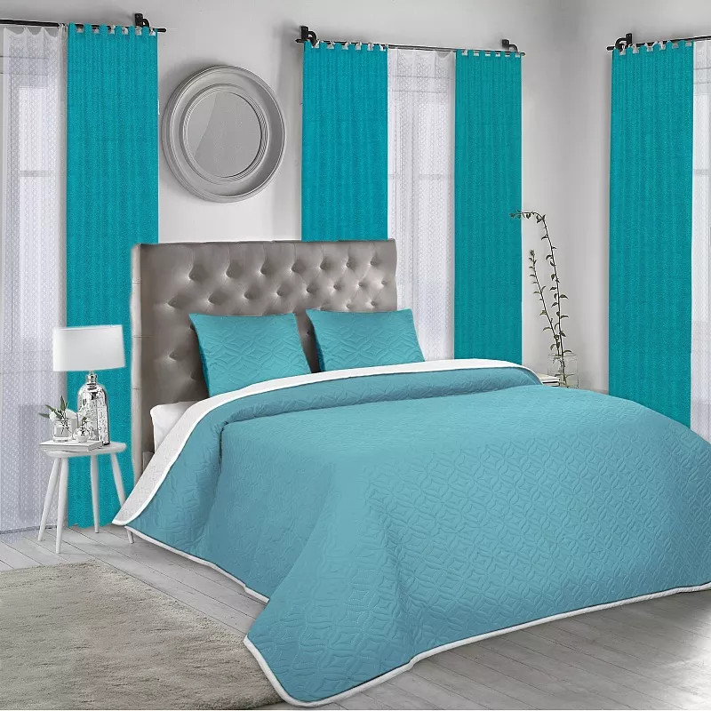 цвет спокойный, швы ровные, само покрывало тоже ровное, двустороннее как будто, пользуюсь с удовольствием, рекомендую