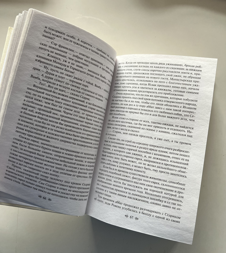 Книга очень красиво оформлена. Приятная на ощупь. Отличная обложка, удобный шрифт, качественная бумага. Теперь про ощущения от прочтения. Роман мне понравился. Времена рыцарства, завораживают и притягивают. По началу книга читается тяжеловато, до тех пор пока не привыкнешь к её стилю и сюжету. Потом читается легко. Я получил большое удовольствие от данного произведения. Книга в идеальном состоянии.