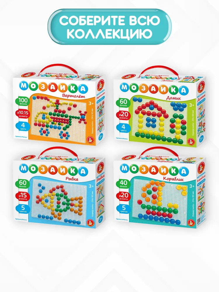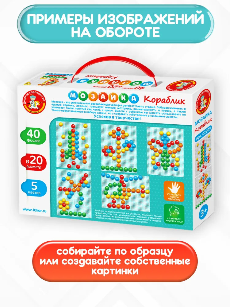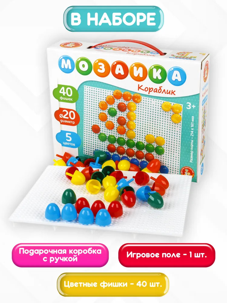 💳 Оплатить за товар можно при получении 🇰🇿 Есть бесплатная доставка по Казахстану от 1 дня 🎁 Копите бонусы с каждой покупки Мозаика — это увлекательная обучающая и развивающая игра для самых маленьких. Яркие картинки заинтересуют вашего непоседу. В процессе игры ребенок освоит цвета, разовьет координацию движений и мелкую моторику. Мозаика рассчитана на детей начиная с 3 летнего возраста. |