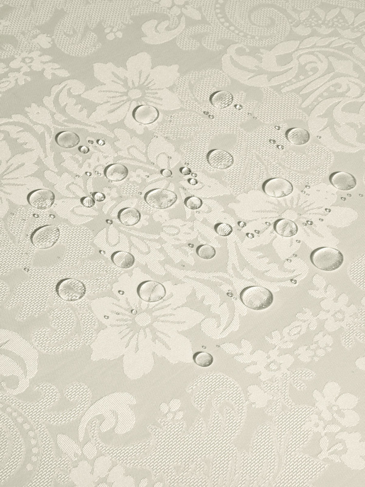 Красивая, качественная скатерть. Водонепроницаемость не проверяла, постелила сверху клеёнку)