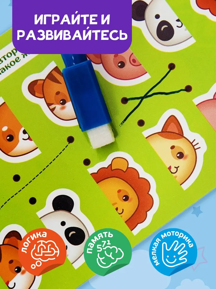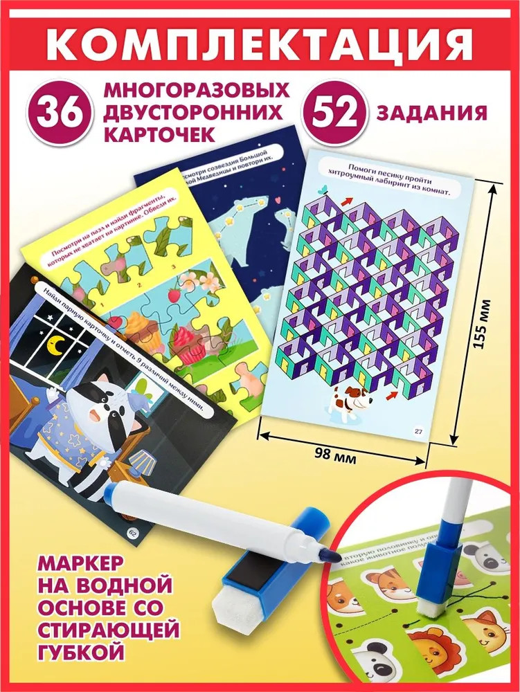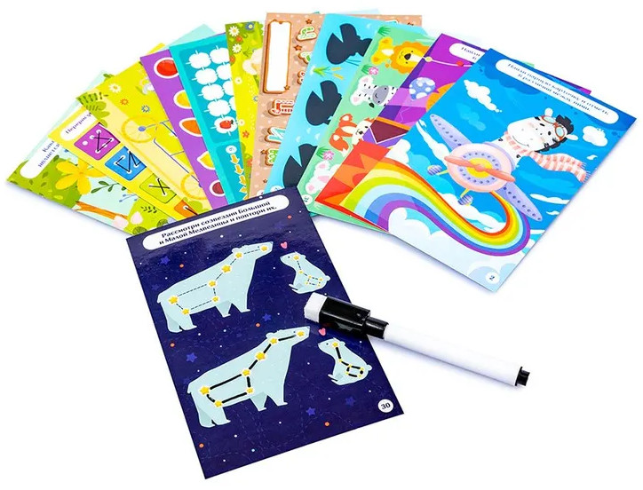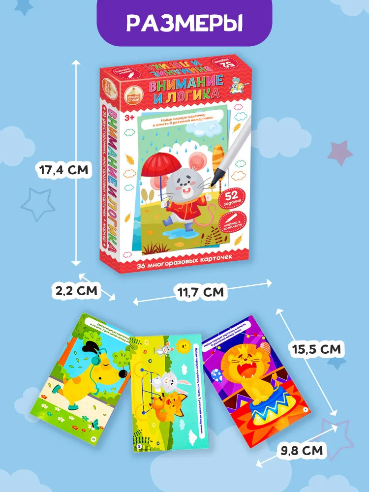 💳 Оплатить за товар можно при получении 🇰🇿 Есть бесплатная доставка по Казахстану 🎁 Копите бонусы с каждой покупки Серия: Пиши-стирай Посмотрите, сколько увлекательных заданий и приключений ждут вас! Игра «Внимание и логика» — это двусторонние карточки с увлекательными заданиями. Будь внимателен подбери пару и найди отличия, продолжи логическую цепочку, отыщи пропавшие буквы, соедини точки и узнай, что задумал художник, пройди лабиринт и отыщи друга и многое другое! Развивай творческие навыки, моторику и логическое мышление. Переходите от простых задач к более сложным. Не бойтесь ошибаться — маркер на водной основе легко стирается обычной салфеткой. |