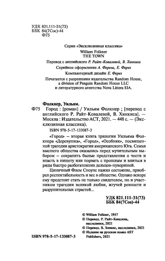 💳 Оплатить за товар можно при получении 🇰🇿 Есть бесплатная доставка по Казахстану от 1 дня 🎁 Копите бонусы с каждой покупки Серия: Эксклюзивная классика «Город» — вторая книга трилогии Уильяма Фолкнера «Деревушка», «Город», «Особняк», посвященной трагедии аристократии американского Юга. Семьи высшего общества оказались перед мучительным выбором — сохранить былые представления о чести и впасть в нищету или порвать с прошлым и влиться в ряды быстро разбогатевших дельцов-нуворишей. Циничный Флем Сноупс нажил состояние, приобрел респектабельность и вес в обществе. Однако вскоре ему предстоит стать не только свидетелем, но и участником трагедии великой любви, жгучей ревности и разрушительных страстей... |