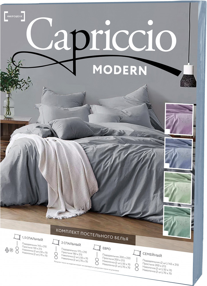 Коллекция постельного белья «Modern» в ультрамодной цветовой гамме. Постельное белье сшито из полисатина. Полисатин очень мягкий, износостойкий. Плотное переплетение нитей делает сатин премиум прочным и долговечным.