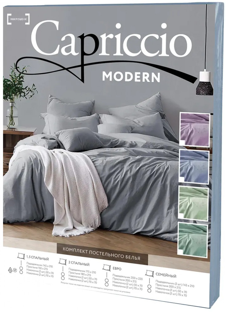 Коллекция постельного белья «Modern» в ультрамодной цветовой гамме. Постельное белье сшито из полисатина. Полисатин очень мягкий, износостойкий. Плотное переплетение нитей делает сатин премиум прочным и долговечным.
