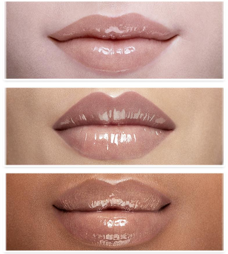 глянцевый блеск , с лёгким цветом на губах