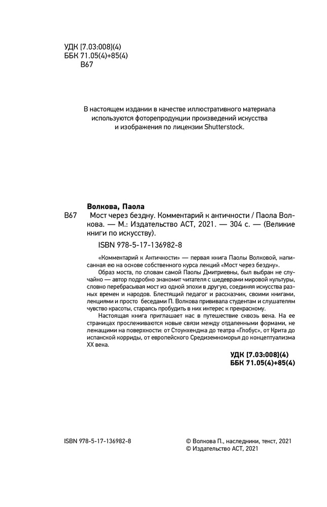 💳 Оплатить за товар можно при получении 🇰🇿 Есть бесплатная доставка по Казахстану от 1 дня 🎁 Копите бонусы с каждой покупки Серия: Великие книги по искусству «Комментарий к Античности» — первая книга Паолы Волковой, написанная ею на основе собственного курса лекций «Мост через бездну». |