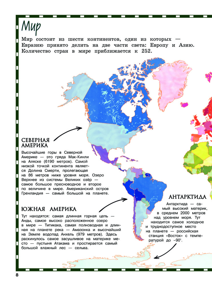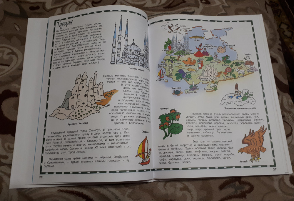 Очень красивая, красочная книга. Интересная подача информации. Описание каждой страны - текстовое и в картинках. Покупала для ребенка, но с удовольствием читала и рассматривала сама.