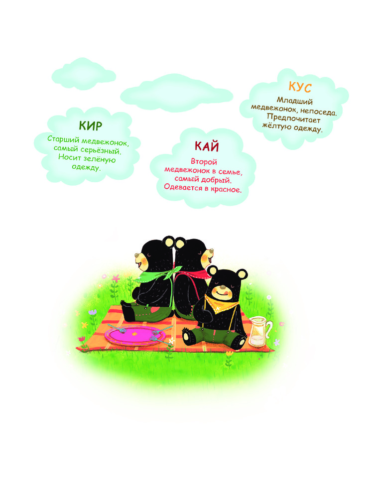 Серия: Мама, почитай! В сказочном лесу живут озорные братья-медвежата Кир, Кай и Кус. Они не унывают и всегда найдут повод для радости. Каждый день наполнен интересными занятиями: нужно построить самый лучший домик на дереве, испечь самые вкусные блинчики, отыскать любимый шарфик и отправиться в захватывающее путешествие. |