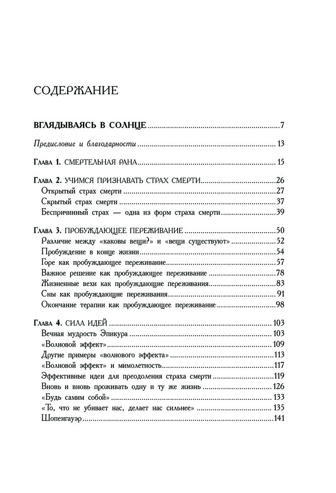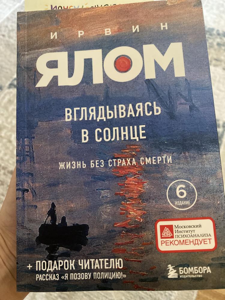 В этой книге автор И. Ялом поднимает очень сложные вопросы, связанные с нашей психикой, с нашими страхами о конечности жизни человека, помогает понять и принять, а потом избавиться от страхов, живущих у нас в душе.