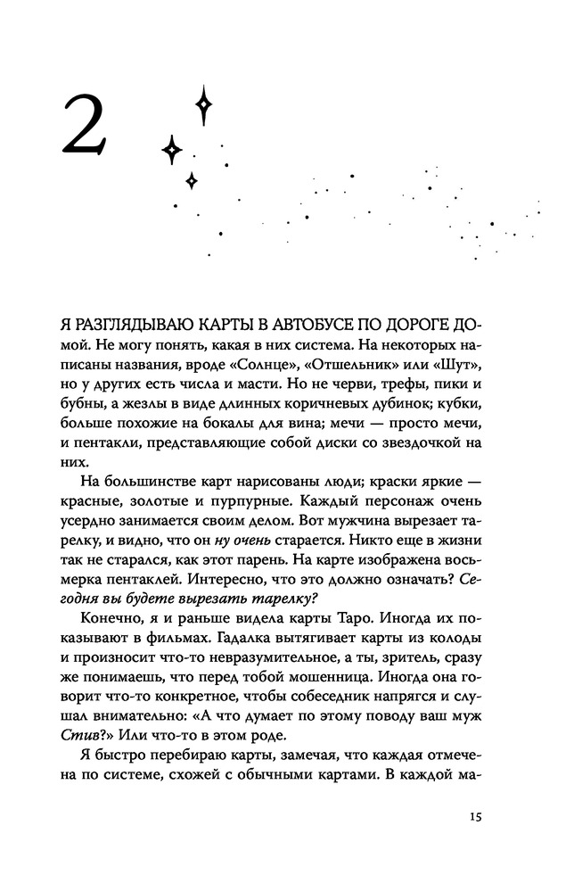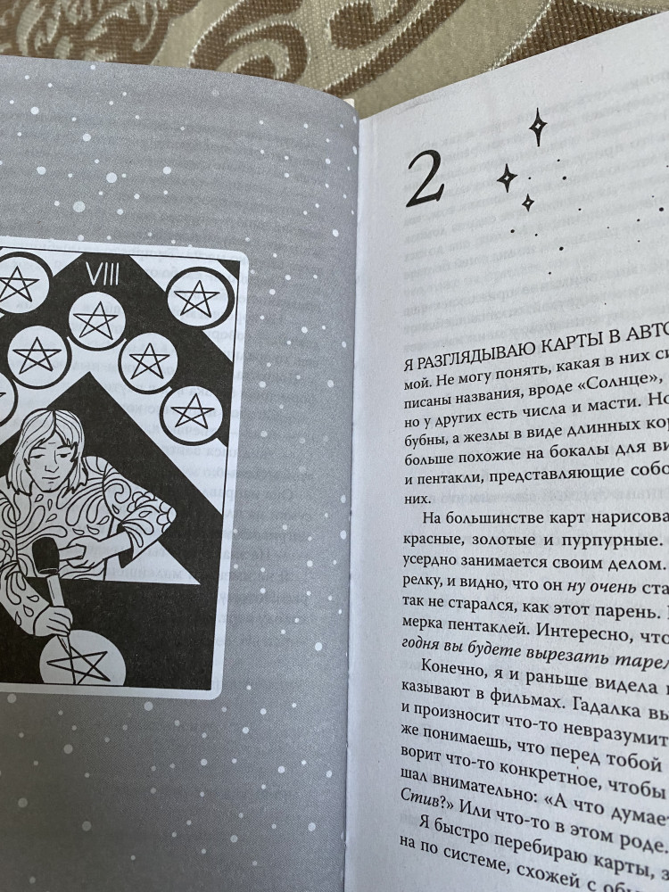 Прекрасная книга! Пусть и о подростках, но тема таро сейчас актуальная, поэтому некоторые моменты очень интересные. Сам сюжет легкий, иногда дают задатки на развитие сюжета в дальнейшем, но если кто-то подумает, что это нераскрытие, то все будет во второй, и возможно даже в третьей части🤌🏼 Сами персонажи интересные, не типичные, даже в конце когда гг просила прощения, а вторая его не приняла, это было идеальный пример, что не все прощается легко, да и необязательно, если не хочешь. Очень классная книга, советую! (Подробнее можете прочитать в моем книжном инстаграме bookweekendd🥰)