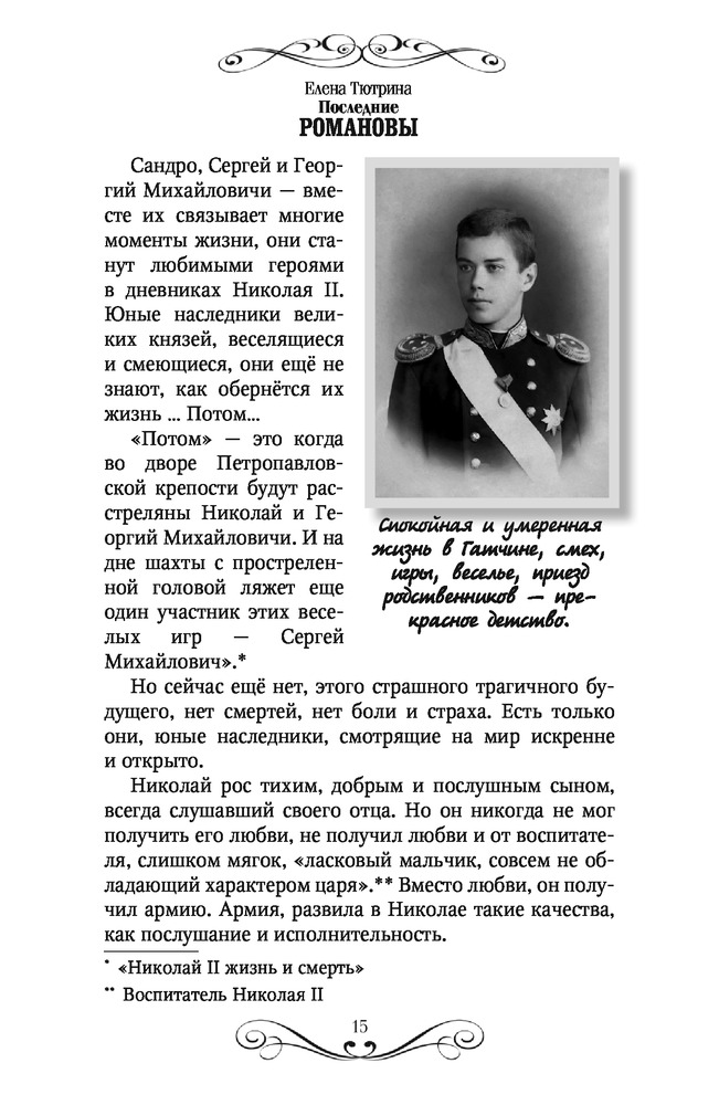Последние Романовы. Жизнь семьи. Конец империиВ данный момент этот товар отсутствует в продаже. Возможно, у нас найдется аналогичный или похожий товар здесь. Серия: Классика лекций Династия Романовых правила Россией более 300 лет. О последних представителях царствующей семьи говорят по-разному. Кто-то их любит и почитает, а кто-то винит во всех трагедиях, произошедших с Россией в начале XX века, возлагая на них ответственность за гибель империи. Однако и те, и другие, говоря о последних Романовых, в первую очередь имеют в виду Николая II и Александру Федоровну. А ведь венценосная пара — лишь верхушка правящей династии. На самом деле на закате Российской империи династия Романовых состояла из множества великих князей и княгинь, служивших на благо России, но оставшихся в тени яркой и трагичной судьбы императорской семьи. Книга «Последние Романовы. Жизнь семьи. Конец империи» позволит вам заглянуть за завесу, отделявшую членов императорской семьи от простых смертных. Вы узнаете о чувствах, мыслях и страхах тех, кому по статусу было не положено их показывать; узнаете о дружбе, разочарованиях и жизни в том закрытом кругу, который называется императорским двором. |