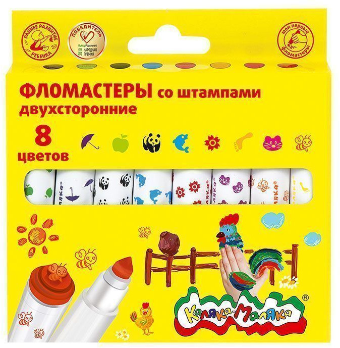 Каляка-Маляка Фломастеры со штампамиВ данный момент этот товар отсутствует в продаже. Возможно, у нас найдется аналогичный или похожий товар здесь. Фломастеры со штампами «Каляка-Маляка» 2 в 1 открывают еще больше возможностей для игры и экспериментов в творческих занятиях ребенка! С одной стороны фломастеров утолщенный грифель треугольной формы, с другой стороны — увлекательные цветные штампики! |
