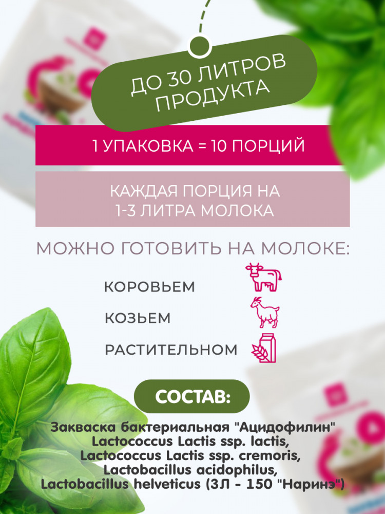 | Откройте для себя мир натуральных заквасок с брендом «Полезная партия»! Мы предлагаем вам не только высококачественные продукты, но и заботу о вашем здоровье через вкусные и полезные кисломолочные деликатесы. Наши закваски подходят для создания разнообразных продуктов: йогурта, кваса, кефира, сметаны, сыра, а также хлеба. Что делает наши закваски особенными? Это натуральные культуры микроорганизмов, которые создают неповторимый вкус и текстуру ваших любимых продуктов. Наш бренд обеспечивает... |