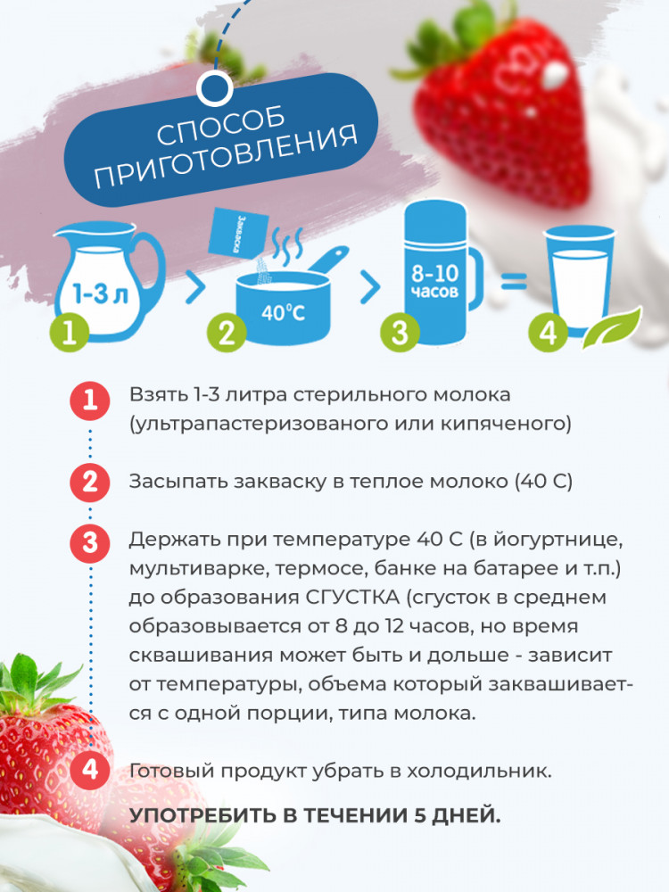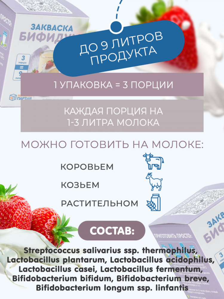 | Откройте для себя мир натуральных заквасок с брендом «Полезная партия»! Мы предлагаем вам не только высококачественные продукты, но и заботу о вашем здоровье через вкусные и полезные кисломолочные деликатесы. Наши закваски подходят для создания разнообразных продуктов: йогурта, кваса, кефира, сметаны, сыра, а также хлеба. Что делает наши закваски особенными? Это натуральные культуры микроорганизмов, которые создают неповторимый вкус и текстуру ваших любимых продуктов. Наш бренд обеспечивает... |