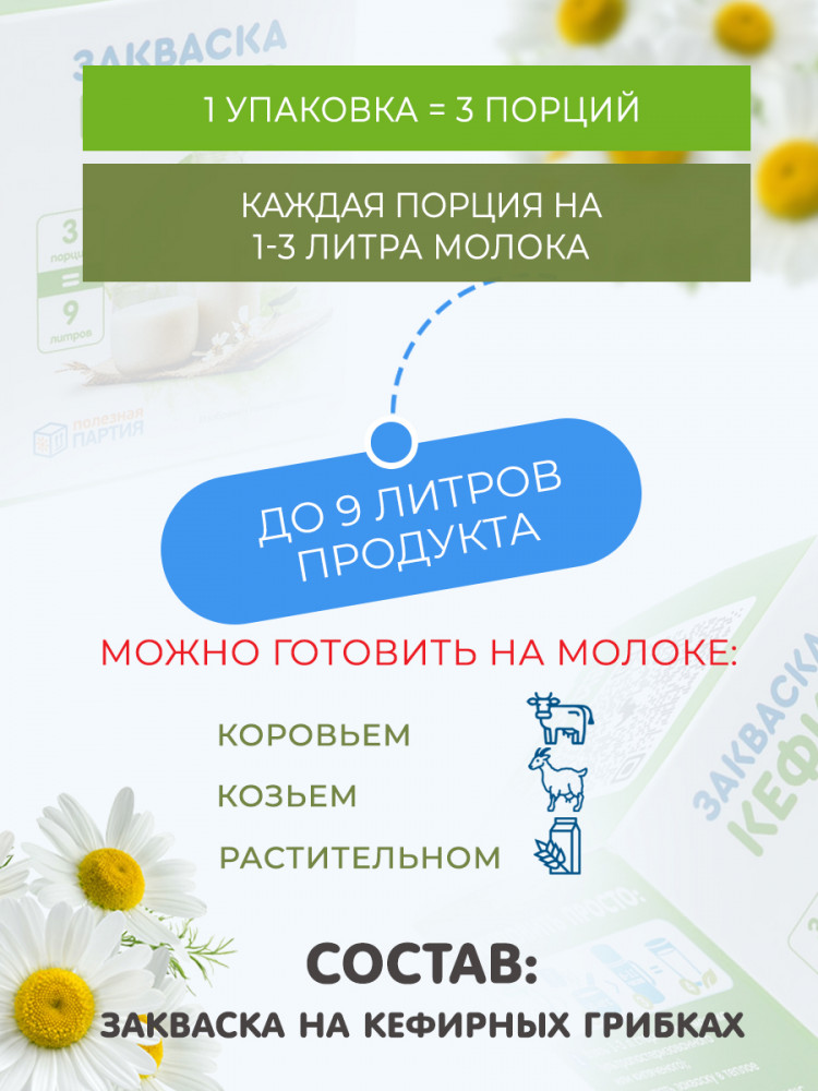 | Откройте для себя мир натуральных заквасок с брендом «Полезная партия»! Мы предлагаем вам не только высококачественные продукты, но и заботу о вашем здоровье через вкусные и полезные кисломолочные деликатесы. Наши закваски подходят для создания разнообразных продуктов: йогурта, кваса, кефира, сметаны, сыра, а также хлеба. Что делает наши закваски особенными? Это натуральные культуры микроорганизмов, которые создают неповторимый вкус и текстуру ваших любимых продуктов. Наш бренд обеспечивает... |