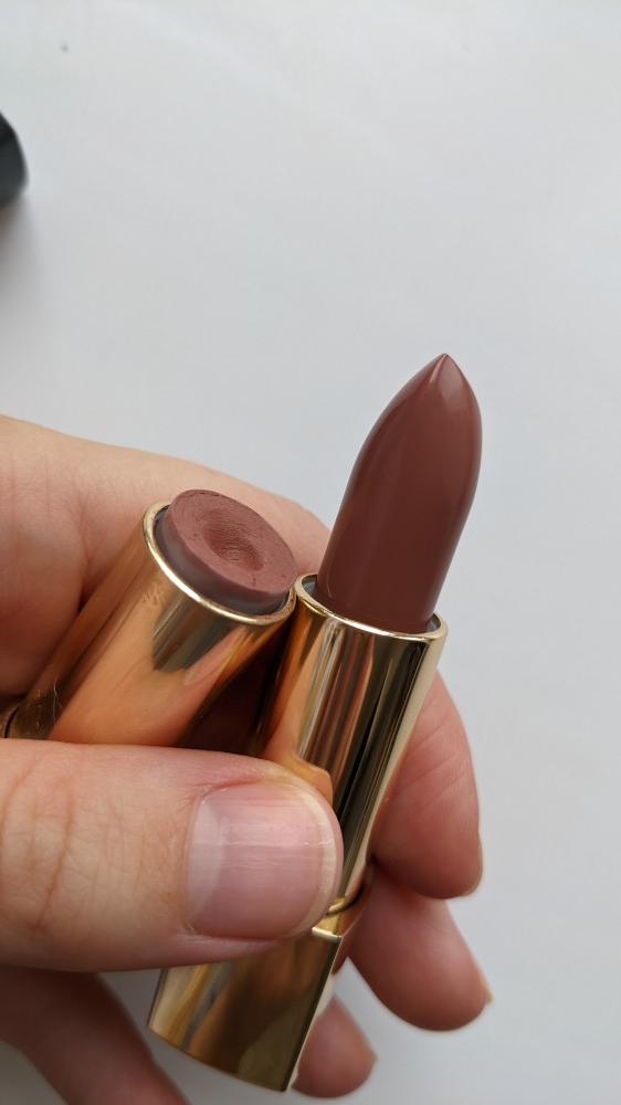 807 Пенелопа. Хорошая помада, даже как будто немного увлажняет. Легко ложится и не скатывается. Цвет замечательный, нанести в один слой - светло коричневый, хочется темнее - просто добавить ещё