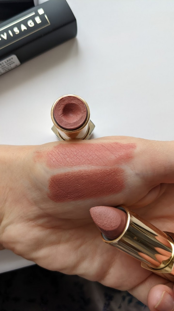 Конгда закончилась любимая помада Art-Visage MATTE LOOK, Тон 702 Дороти и я нигде не могла найти ее в продаже на глаза попалась эта новинка - Velvet lady, Тон 806 Дороти. Конечно я обрадовалась и сразу заказала, думала будет такой же как моя любимица, но нет. Старый друг лучше новых двух, я уже обожглась, купив Golden Rose Velvet Matte Тон 31, которая вообще плешиво ложится у внутренней каймы губ. Ох.. ну вот. По цвету это не та Дороти, но цвет приятный и визуально выбеливает зубы, как и любимая 702. Помада ощущается мягче, но мне нравилась сухая Дороти. И крупинки - новинка неоднородная какая-то. Стойкость чуть хуже сухой. На безрыбье и рак - рыба. Буду пользоваться, но с удовольствием бы купила прошлую формулу Дороти, а не вот это всё.