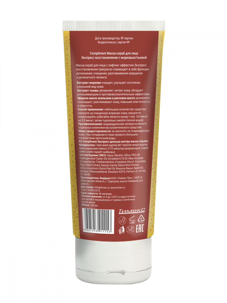 Compliment Маска-скраб для лица с морковью и тыквой «Экспресс-восстановление»
