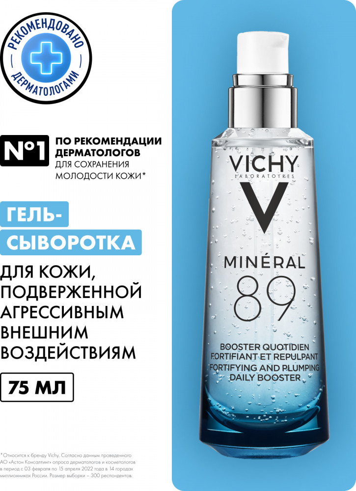Vichy Mineral 89 Гель-сыворотка для кожи, подверженной агрессивным внешним воздействиям
