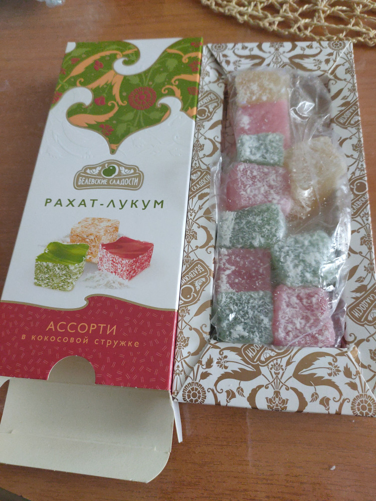 Белевские сладости Рахат-лукум «Ассорти»В данный момент этот товар отсутствует в продаже. Возможно, у нас найдется аналогичный или похожий товар здесь. Рахат-лукум «Ассорти» в кокосовой стружке с ароматами «Абрикоса, Вишни, Яблока» — понравится всем любителям восточных десертов и мягких конфет. Волшебное сочетание нежного, тающего во рту рахат-лукума с фруктово-ягодными нотками и вкуснейшей кокосовой стужкой дает очень свежий и насыщенный вкус. В составе нашего рахат-лукума только натуральные ингредиенты и никаких искусственных добавок. |