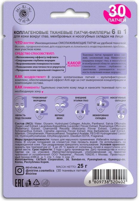 Mi-Ri-Ne Патчи-филлеры коллагеновые тканевые «6 в 1»