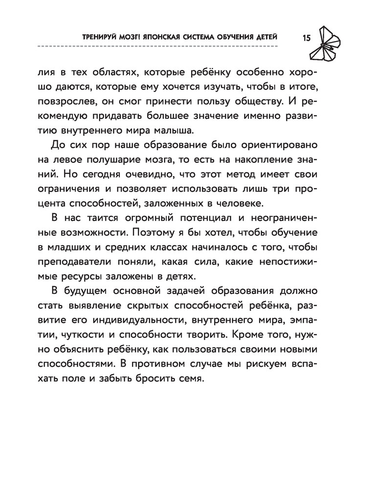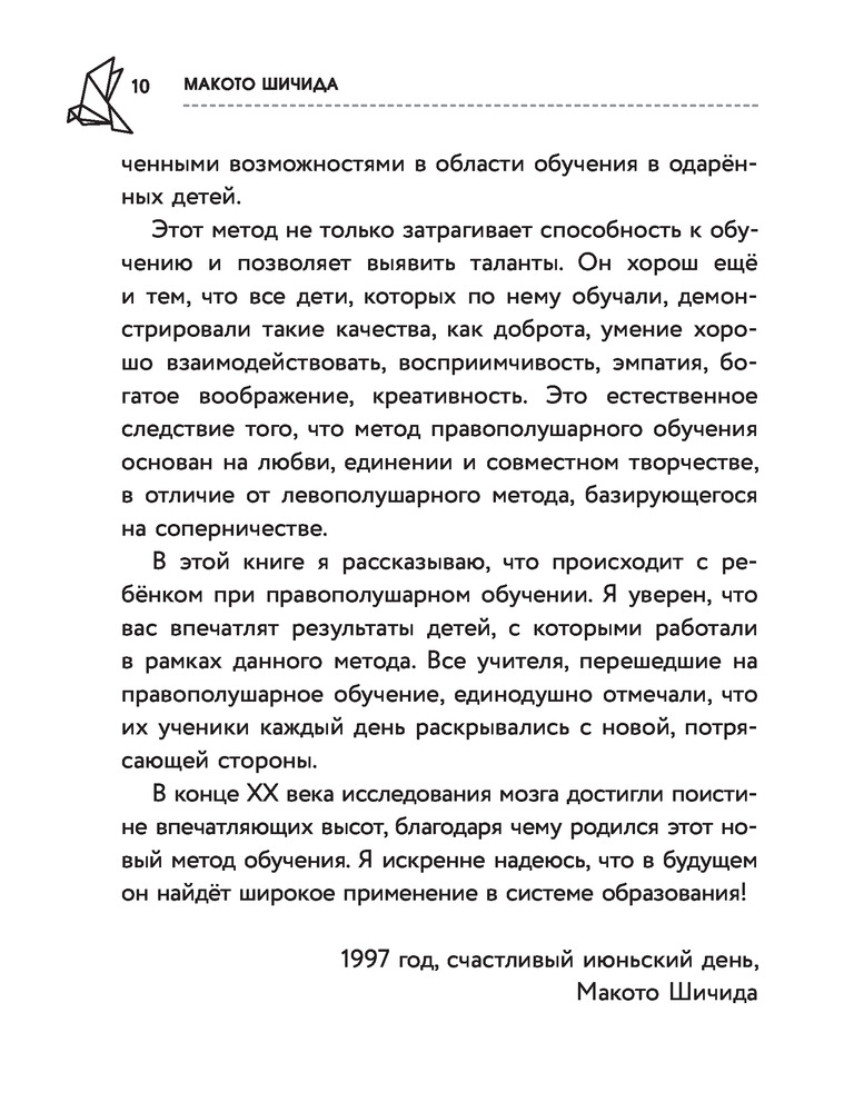 💳 Оплатить за товар можно при получении 🇰🇿 Есть бесплатная доставка по Казахстану от 1 дня 🎁 Копите бонусы с каждой покупки Серия: Легкий старт Метод обучения Макото Шичиды, представленный в книге, помогает выявлять врождённые способности и развивать их, когда это проще всего сделать, то есть в детстве. Макото Шичида — доктор педагогических наук, всемирно известный эксперт по дошкольному и школьному образованию, автор метода правополушарного обучения. Его книги переведены на многие языки, его методиками пользуются более чем в 300 детских центрах по всему миру. Эта книга, известная во всём мире, содержит основные иди автора. Простым и понятным языком в ней объясняется, как с раннего детства развивать мозг ребёнка и выявлять его способности. Для широкого круга читателей. |