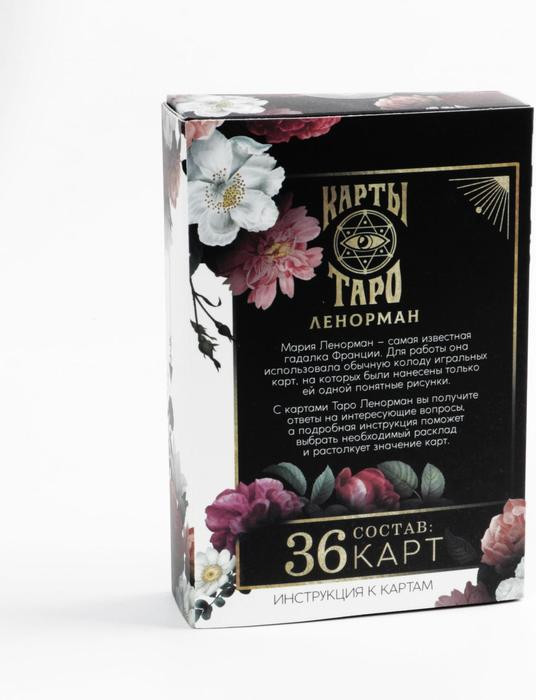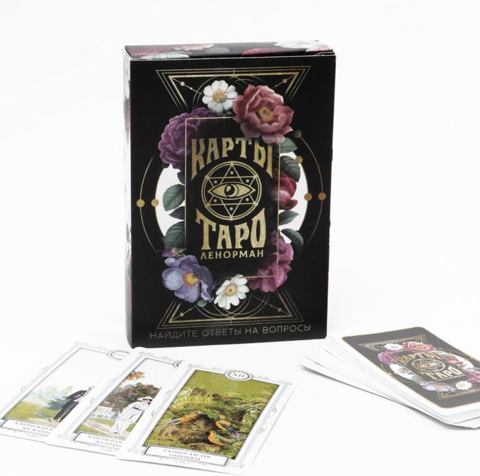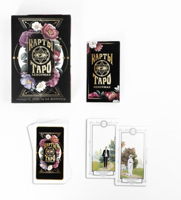 Красиво упакованные карты. Рубашка интересная. А вот рисунок у карт бледноватый. Здесь на картинке не разглядела, что каждая карта подписана. Подписана бестолково, где классическое название карты, где сжатая трактовка. Получилась белиберда. Также на картах отсутствует цыганская вставка. Вот за это сняла звезду. А так, если знаешь колоду Ленорман, то можно работать. В руке лежат удобно, размер подходящий, картон обычный для карт. Новичка не советую.
