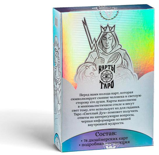 💳 Оплатить за товар можно при получении 🇰🇿 Есть бесплатная доставка по Казахстану от 1 дня 🎁 Копите бонусы с каждой покупки Серия: Halloween — Хеллоуин Опробуйте волшебную колоду «Светлый Дух». Перед вами колода карт, которая символизирует сияние человека и светлую сторону его души. Карты выполнены в минималистичном стиле, несут свет тому, кто использует их для гадания. |