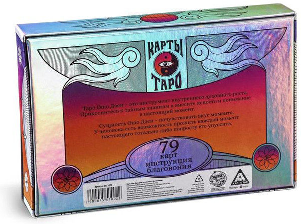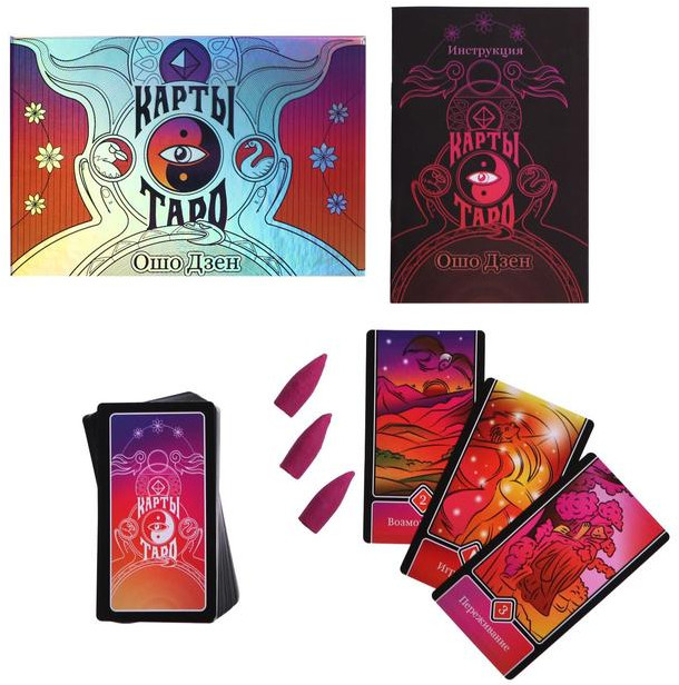 💳 Оплатить за товар можно при получении 🇰🇿 Есть бесплатная доставка по Казахстану от 1 дня 🎁 Копите бонусы с каждой покупки Серия: Halloween — Хеллоуин Когда жизнь становится сложной и тяжёлой, наполняясь сомнениями и тревогами, мы начинаем искать ответы на вопросы, которые волнуют нас больше всего. Таро Ошо Дзен поможет сконцентрироваться на том, что происходит здесь и сейчас. Основной принцип Ошо Дзен основан на мудрости философии Дзен, согласно которой всё, что с нами происходит, является прямым отражением того, что мы думаем и чувствуем. |