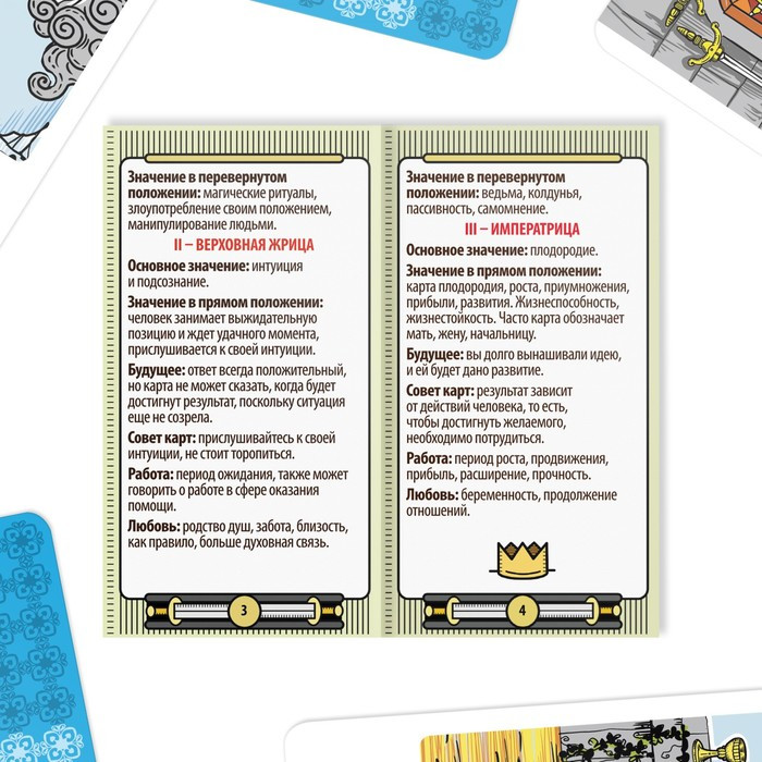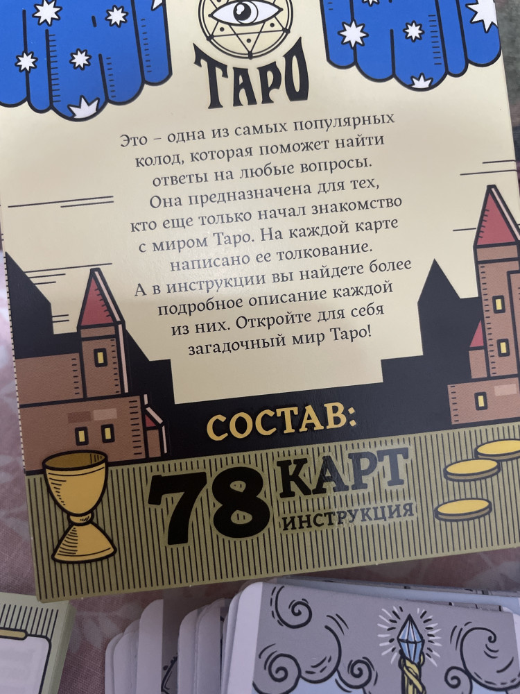 очень хорошие карты для начинающих,все подробно и четко написано.Карты в хорошем состоянии.твердые,не как бумага.Хорошо упаковано👍🏻