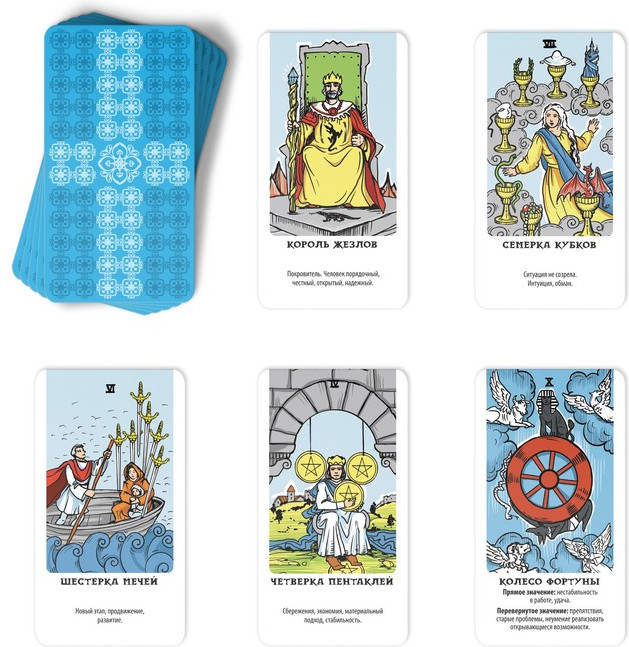 Мне понравилось илюсрацыии похожи на уэйта , они русские , в книжке есть пару расскладов и более подробные трактовка карт