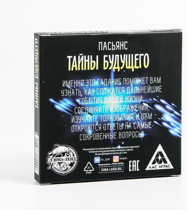 Лас Играс Пасьянс «Тайны будущего»крупные карты яркие картинки плотный картон В данный момент этот товар отсутствует в продаже. Возможно, у нас найдется аналогичный или похожий товар здесь. Серия: Halloween — Хеллоуин Узнайте все тайны грядущего! Именно этот набор для гадания поможет узнать, какие события произойдут в вашей жизни. Соединяйте изображения, изучайте толкования, и вам откроются ответы на самые сокровенные вопросы! |