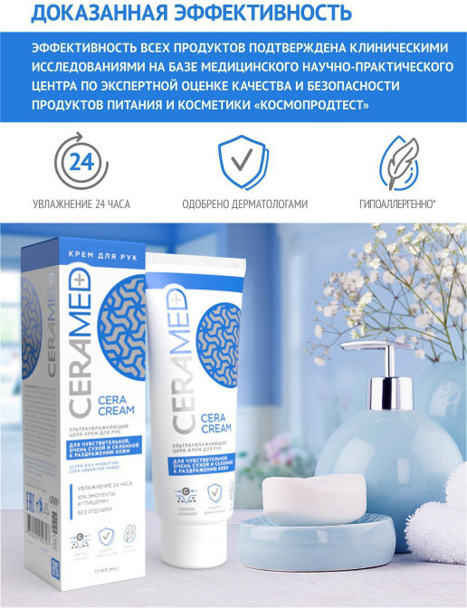 Ceramed Цера-крем для рук ультраувлажняющийВ данный момент этот товар отсутствует в продаже. Возможно, у нас найдется аналогичный или похожий товар здесь. Кожа рук чаще всего подвержена агрессивным воздействиям со стороны окружающей среды. Качество воды, перепады температуры и солнечные лучи истощают липидный слой кожи и запасы влаги в ней. Кожа теряет свою эластичность. Биосинергия компонентов позволяет цера-крему глубокого увлажнять и интенсивно питать кожу рук, оставляя ее мягкой и увлажненной в течение длительного времени. Идеально подходит для чувствительной, очень сухой и склонной к раздражению кожи. |