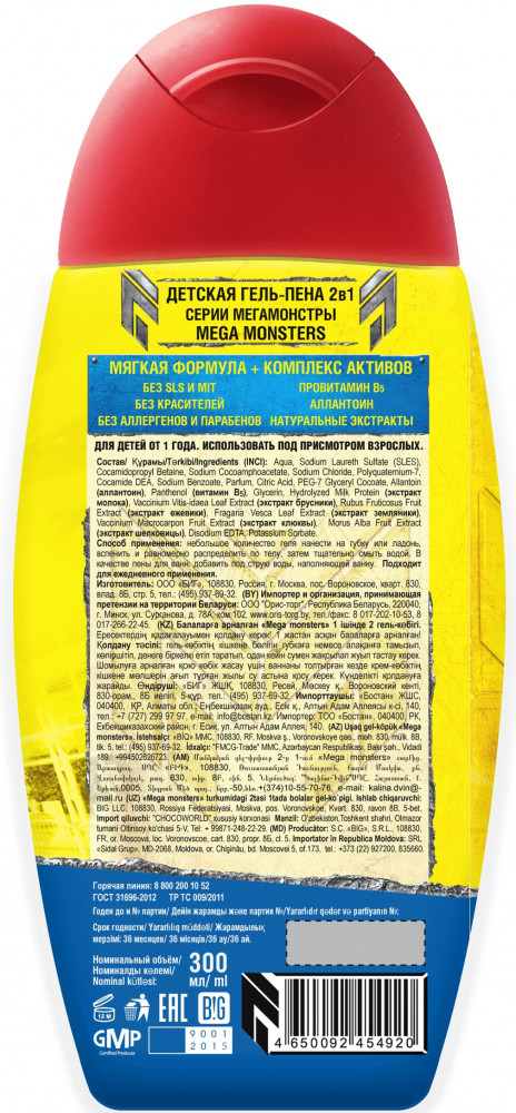 💳 Оплатить за товар можно при получении 🇰🇿 Есть бесплатная доставка по Казахстану от 1 дня 🎁 Копите бонусы с каждой покупки Гель для душа, который мягко очищает, дает силы и настраивает на подвиги — это суперсредство всех победителей. Серия «Мегамонстры» адаптирована к потребностям детской кожи и волос. Мягкая формула и комплекс активов обеспечивают надлежащий уход и бережное очищение. Яркий конфетный аромат придает бодрость и настраивают на подвиги и свершения. Гель не способствует возникновению аллергических реакций, так как не содержит парабены, синтетические масла и силиконы, агрессивный компонент SLS. Для детей от 1 года. Содержит гипоаллергенную отдушку. |