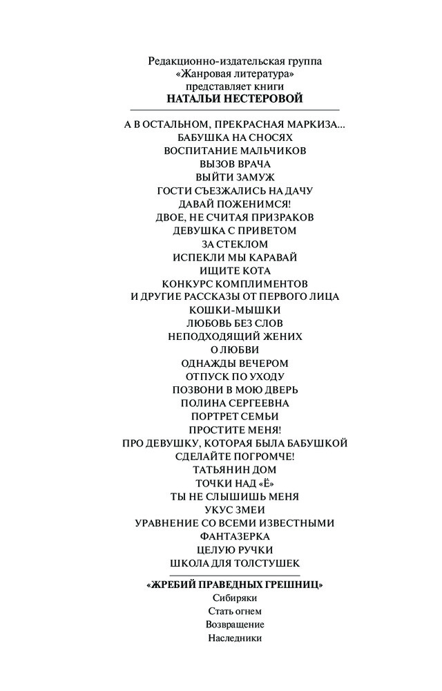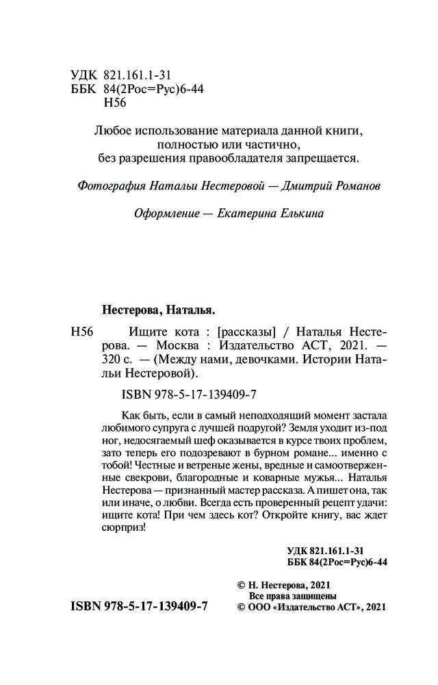 Ищите котаВ данный момент этот товар отсутствует в продаже. Возможно, у нас найдется аналогичный или похожий товар здесь. Серия: Между нами, девочками (м) Как быть, если в самый неподходящий момент застала любимого супруга с лучшей подругой? Земля уходит из-под ног, недосягаемый шеф оказывается в курсе твоих проблем, зато теперь его подозревают в бурном романе именно с тобой! Честные и ветреные жены, вредные и самоотверженные свекрови, благородные и коварные мужья... Наталья Нестерова — признанный мастер рассказа. А пишет она, так или иначе, о любви. Всегда есть проверенный рецепт удачи: ищите кота! При чем здесь кот? Откройте книгу, вас ждет сюрприз! |