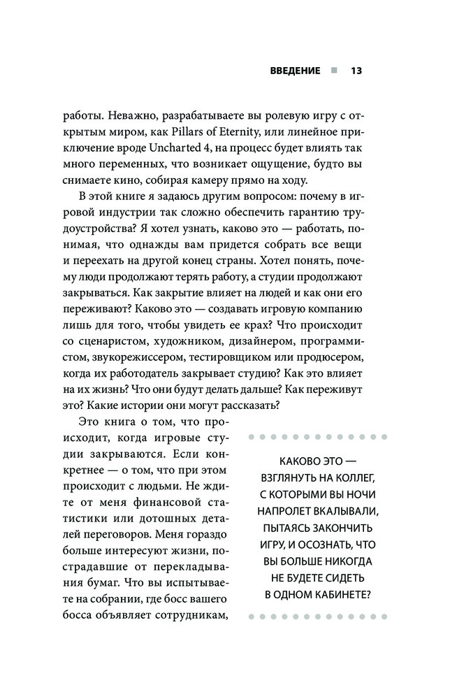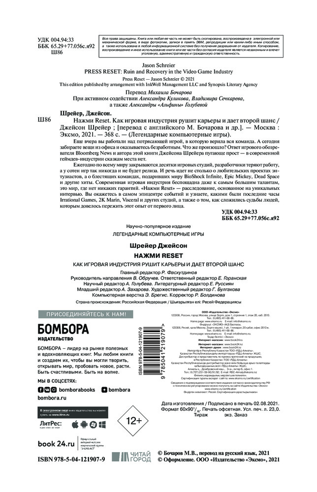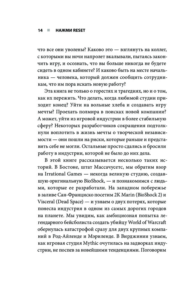 Серия: Легендарные компьютерные игры Внутри: реальные истории разработчиков Irrational Games, 2K Marin, Visceral и других студий, чье падение стало для сотрудников шоком. Вы — игровой разработчик, и Ваша мечта — делать игры, в которые будут играть миллионы геймеров. Но реальный мир — не сказка. Студии закрываются, сделанные с любовью проекты отправляются в мусорный бак, а люди остаются без работы. Джейсон Шрейер снова заглянет за кулисы индустрии видеоигр, чтобы рассказать, как распадались самые известные студии последнего десятилетия. Вы узнаете, почему успех BioShock Infinite, Epic Mickey или Dead Space не помог их создателям удержаться на плаву. Вас ждет уникальное расследование причин краха индустрии и поиск ответов на вопрос, заслуживает ли она второго шанса. |