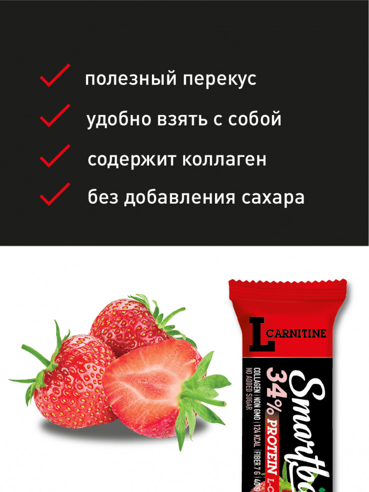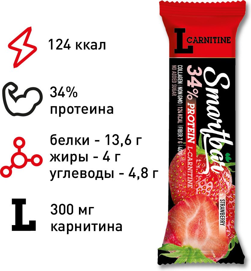 Содержит L-карнитин, приятная структура, насыщенный вкус клубники