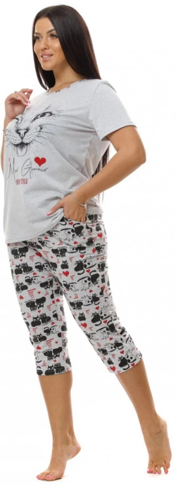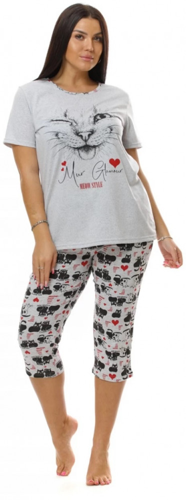Ношу 48 - 50 размер, заказала 50. Подошёл идеально, бриджи в оптяг но не критично, не сдавливают ноги. если бы заказала на размер меньше, не налезли бы. Кто хочет по свободнее в ногах, то надо заказывать на размер больше. Футболка свободная. Материал приятный. Ещё не стирала. Рисунок соответствует. Мне очень понравилась пижама. Соответствует картинке.
