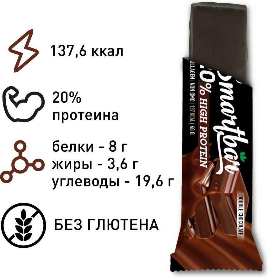 Smartbar Батончик протеиновый «Двойной шоколад в темной глазури»