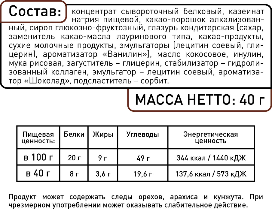 Ярко чувствуется протеин (вкус неприятный). Батончик не протеиновый (существенный перевес в сторону углеводов)