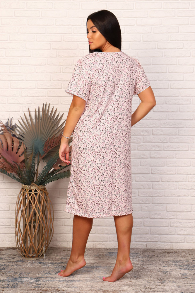 Обычная сорочка с миленьким узорчиком.Единственное, на фото: на девушке она длиной ниже колена, у меня, видимо, рост другой -не совпала с фото.На этикетке указан только размер.