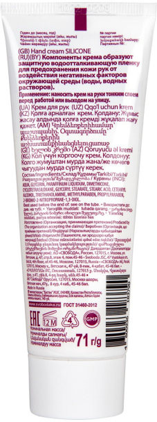Svoboda Крем для рук защитный «Силиконовый»-20% +25 защищает кожу быстро впитывается смягчает заживляет ранки образует плёнку