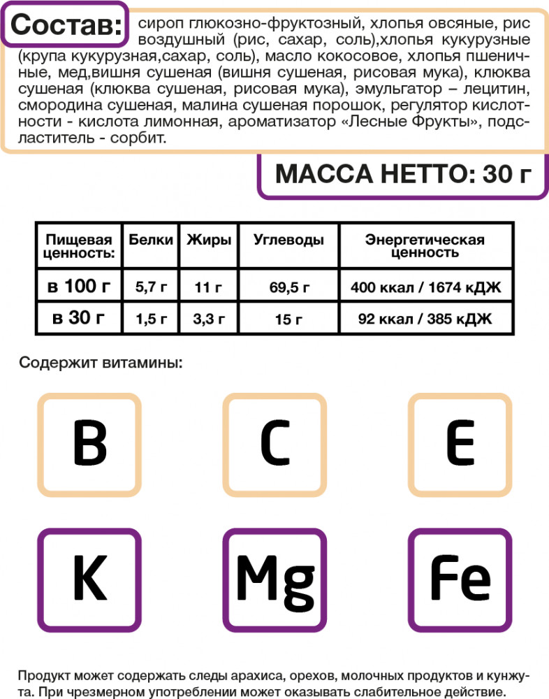 Отзывы «Батончик злаковый «Лесные ягоды и мед»»