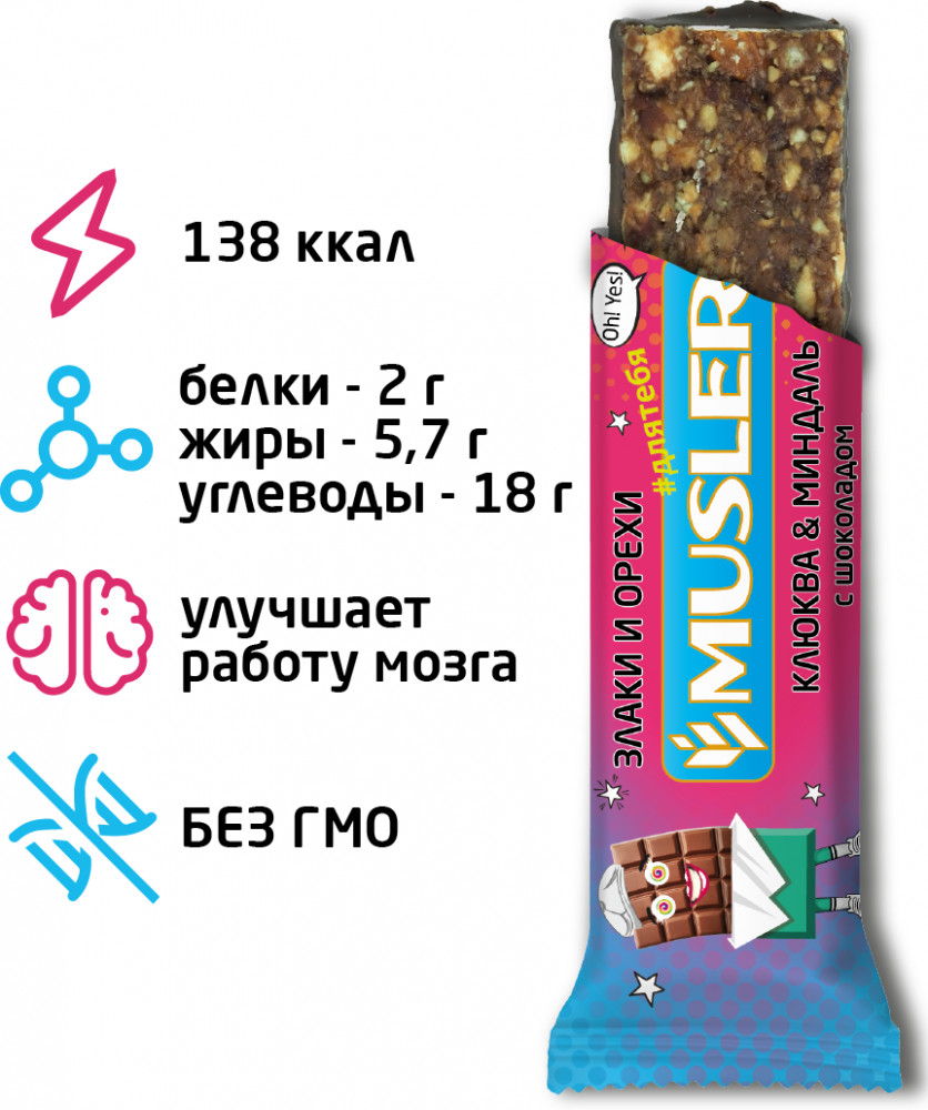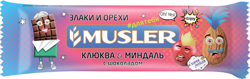 Musler Батончик злаковый «Клюква, миндаль с шоколадом»