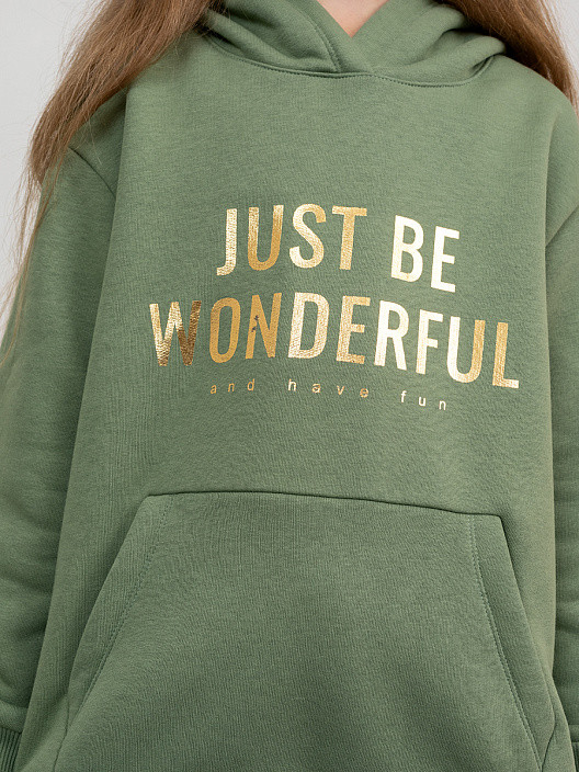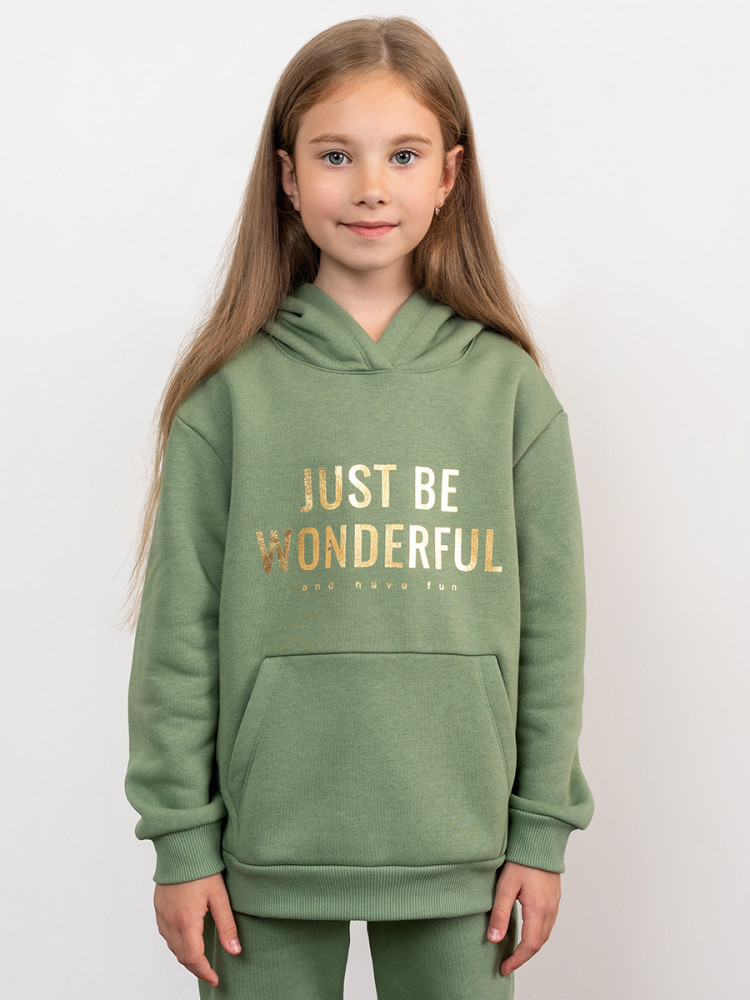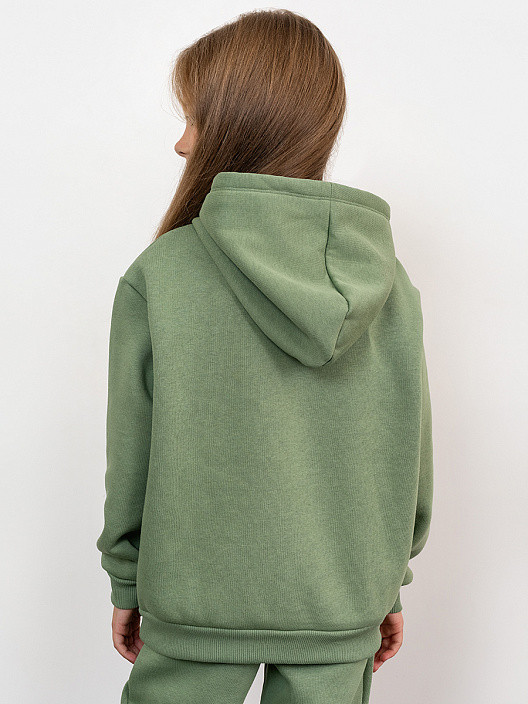 Для стильных девочек! Худи свободного силуэта из футера с теплым подчесом — мягкого, гигроскопичного и неприхотливого трикотажного полотна. Горловина круглой формы с капюшоном. Длинные рукава завершаются манжетами. Углубленная пройма дарит свободу движений и комфорт. Удобный карман-кенгуру добавляет практичности.