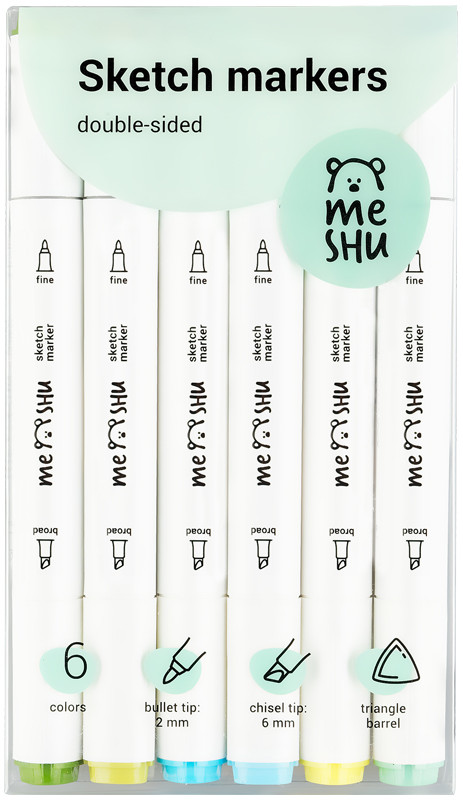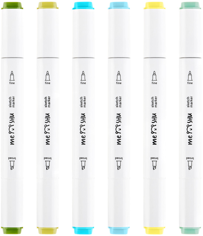Набор двусторонних маркеров для скетчинга Meshu — идеальный выбор для художников, дизайнеров, иллюстраторов и любителей скетчинга, подходят для создания анимэ и манги. Эргономичный трехгранный корпус удобно лежит в руке и позволяет эффективно прорабатывать мелкие детали рисунка. Чернила на спиртовой основе — быстро высыхают, водостойкие, нетоксичны и не портят поверхность бумаги. Маркеры обладают пулевидным (2 мм) и скошенным (6 мм) наконечниками, что позволяет прорабатывать как мелкие детали рисунка. так и закрашивать большие области. |