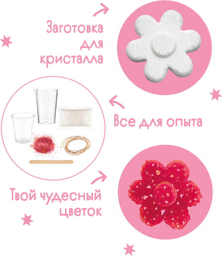 Выращивание кристаллов — это отличная возможность не только понаблюдать за чудесами окружающего мира, но и сотворить их самому! С набором «Кристаллы: Чудесный цветок» вы сможете изготовить сияющий фигурный кристалл в форме красного цветка. Кристальная фигурка станет как отличным украшением для комнаты, так и необычным подарком. В заготовке есть специальное отверстие, поэтому готовым кристаллом можно будет украсить комнату или повесить его на елку.