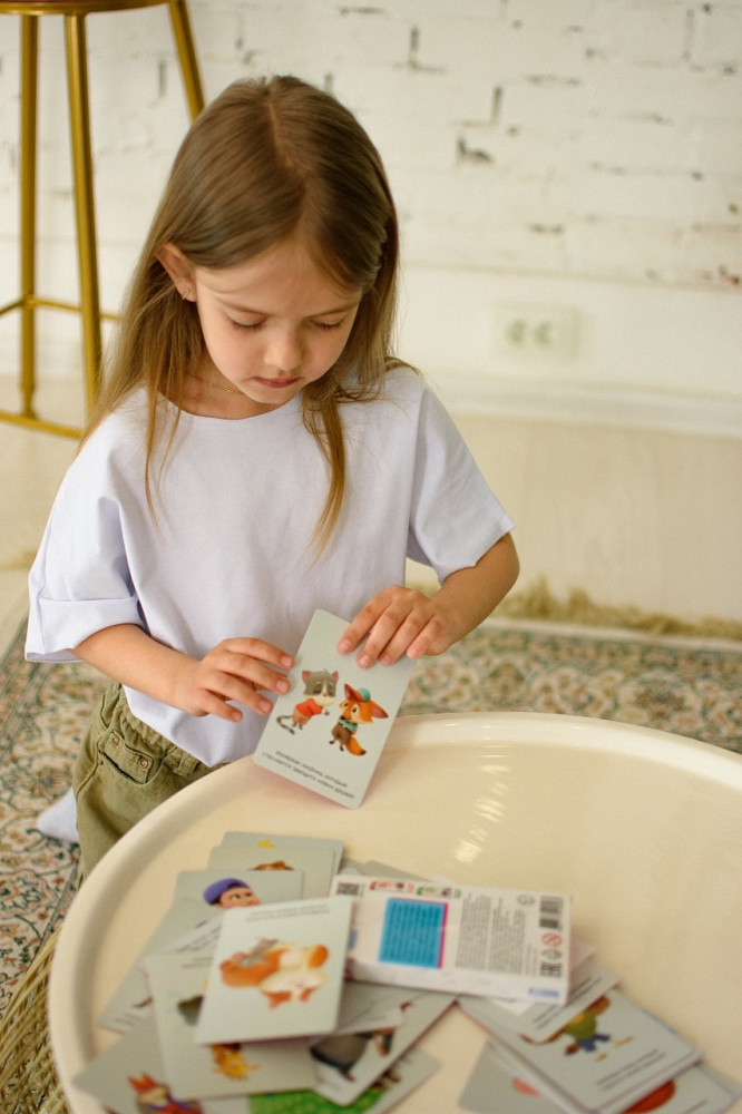 Качество карточек хорошее, но сам подход мне показался простоватым. Возможно в процессе дети сами найдут полезность…